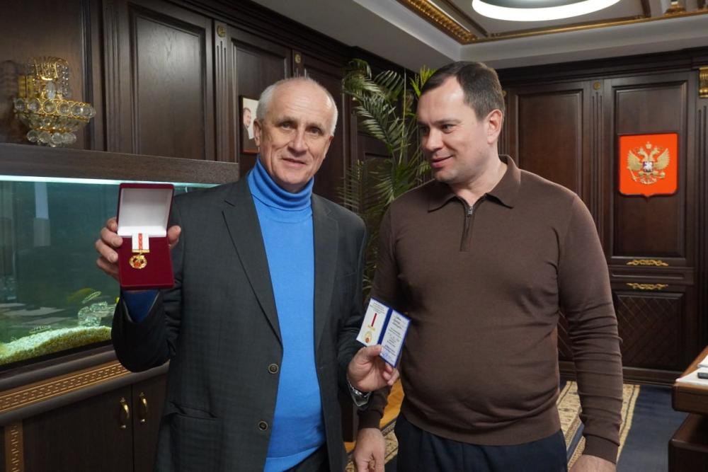 Глава администрации Керчи Олег Каторгин поздравил юбиляра, вручив редкую награду за безупречную работу в городских учреждениях, организациях и на предприятиях