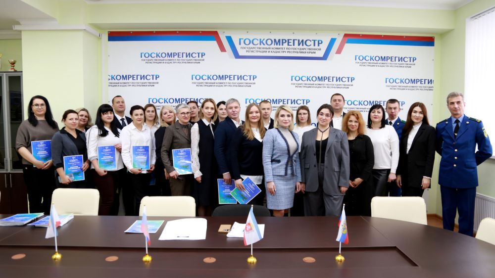 В связи с 25-летием создания системы госрегистрации прав на недвижимое имущество и сделок с ним , а также за безупречное исполнение служебных обязанностей по итогам 2022 года 54 сотрудника Госкомрегистра получили от Управления Росреестра по РК и Севастополю благодарственные письма.