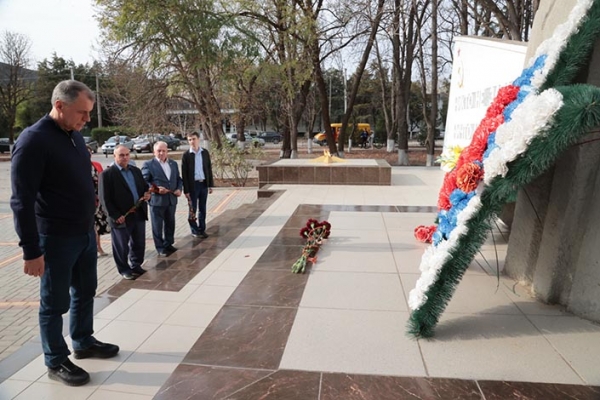 В пгт. Красногвардейское спикер возложил цветы к мемориалу «Никто не забыт, ничто не забыто» и Памятному знаку в честь воинов, погибших в СВО; ознакомился с экспозицией Районного краеведческого музея.