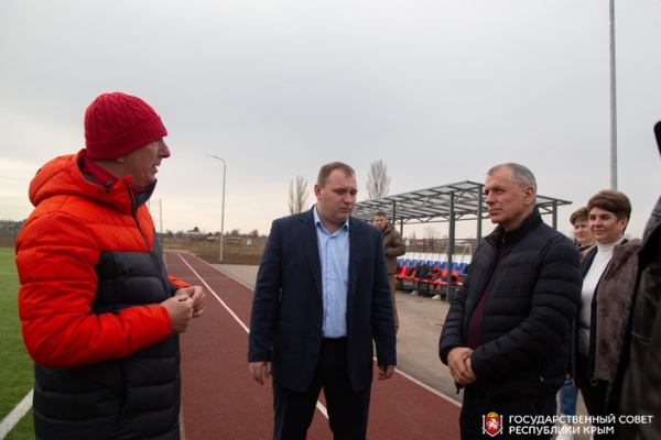 Председатель Государственного Совета Республики Крым Владимир Константинов совместно с руководителями Раздольненского района Татьяной Вышинской и Денисом Олейником посетил спортивные объекты в рамках рабочей поездки
