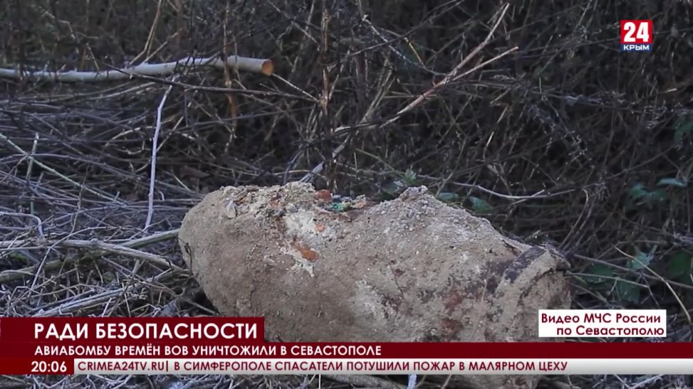 Сотрудники МЧС России уничтожили в Севастополе авиабомбу времён Великой Отечественной войны.