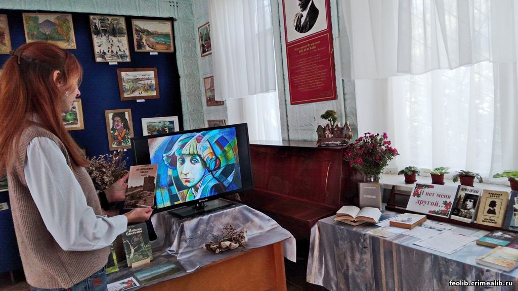 Прошел 131 год со дня рождения Марины Цветаевой и 82 года со дня гибели. Но жизнь Цветаевой - ещё не прочитанная книга для многих. Удивительный поэт, её стихи обладают неповторимым ритмом, особой интонацией, чарующей притягательностью. К дню рождения Марины Цветаевой в Городской библиотеке им. С. Пивоварова была оформлена книжная выставка "И нет меня другой...", многие представленные книги были подарены читателями и друзьями библиотеки. В эти дни в библиотеке были показаны видеофильмы о жизни и творчестве поэта. В 2000-е годы феодосийский режиссер Юрий Водяницкий и журналист Венера Разумовская создали цикл телепередач "По волнам нашей памяти". Юрий Иванович подарил библиотеке записи этих фильмов, один из них посвящен первому цветаевскому костру, созданию музея сестер Цветаевых, Ирине Михайловне Двойниной, много сделавшей для его открытия. Феодосия была любимым городом для Марины Цветаевой, городом счастья и радости. Память о Марине и Анастасии Цветаевых хранят улочки старого города, сохранившие аромат ушедших времен.