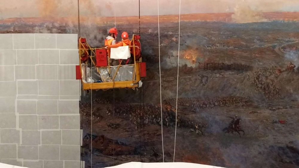 "Сердце" панорамы авторства Рубо На втором этаже здания специалисты консервируют его главное достояние – масштабное живописное полотно Франца Рубо, размером 115 х14 метров. А также закрывают предметный план.