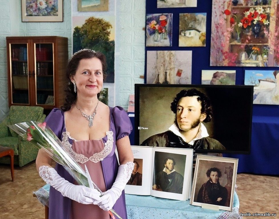 В дни памяти великого поэта А. С. Пушкина в библиотеке прошла встреча с О. В. Локтевой - поэтом , писателем, действительным членом Российского Философского Общества РАН. Артистично Оксана Викторовна раскрыла тему "Русские балы в жизни и творчестве А.С.Пушкина". Украшением вечера стало выступление участников Клуба исторического бального танца "Падэграс" (Феодосия). В завершение гости и читатели закружились в вальсе. Сотрудники библиотеки представили литературу книжной выставки "Сиянье пушкинских стихов" и продемонстрировали видеоролик "Родословная поэта".