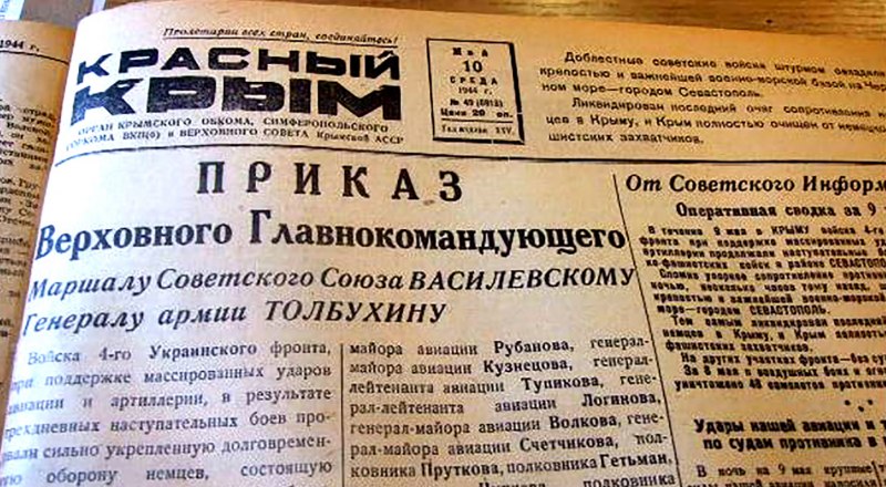 10 мая «Красный Крым» опубликовал приказ Иосифа Сталина войскам 4-го Украинского фронта с благодарностью Родины, а «Правда» писала: «Здравствуй, родной Севастополь! Город-герой, город-богатырь!». И 24 залпа салюта из 324 орудий. Впрочем, для Севастополя битва завершилась 12 мая 1944-го, когда на Херсонесе ликвидированы остатки фашистов. И там были бои, немало погибло - Яков Кириченко из Сталинской (Донецкой) области, Николай Марыгин из Дагестана, Терентий Костянов из Курской области, Павел Черемисин из Симферополя, Фёдор Пивоваренко, Григорий Баленко из Колайского (Джанкойского) района и десятки других; много крымчан, мобилизованных после освобождения своих городов и сёл… Не забываем, крымчане!