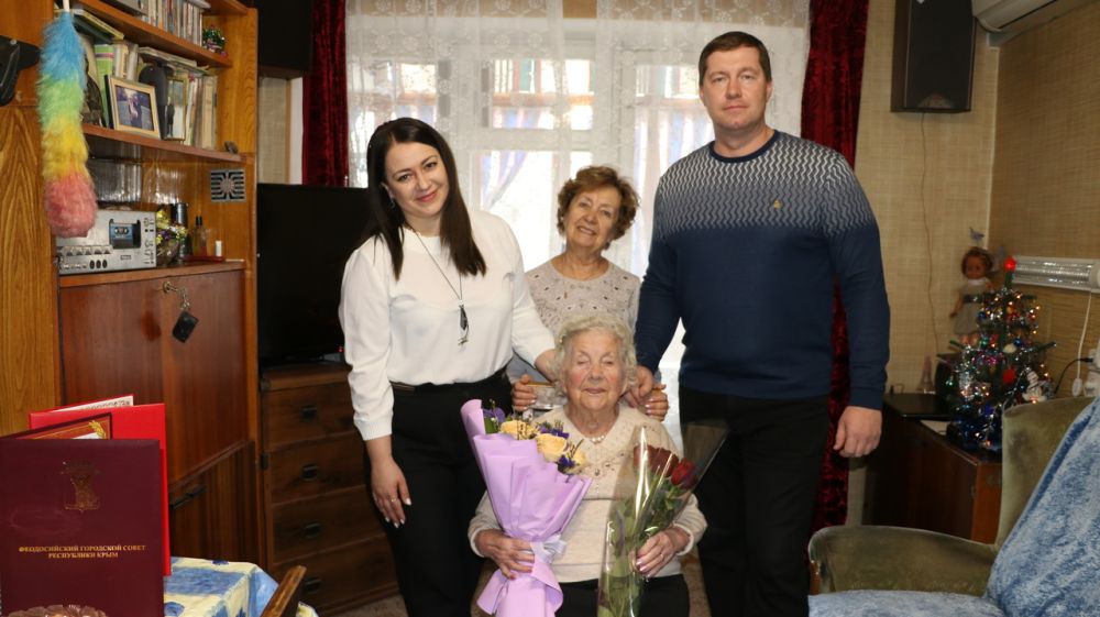 Цветы, подарки и поздравительные адреса от имени Глава муниципального образования и Главы администрации Софии Евгеньевне вручили депутат Феодосийского городского совета Артем Мельниченко и заместитель главы администрации Юлия Некрасова , пожелав ей крепкого здоровья, благополучия, радости и счастья ее большой и дружной семье.