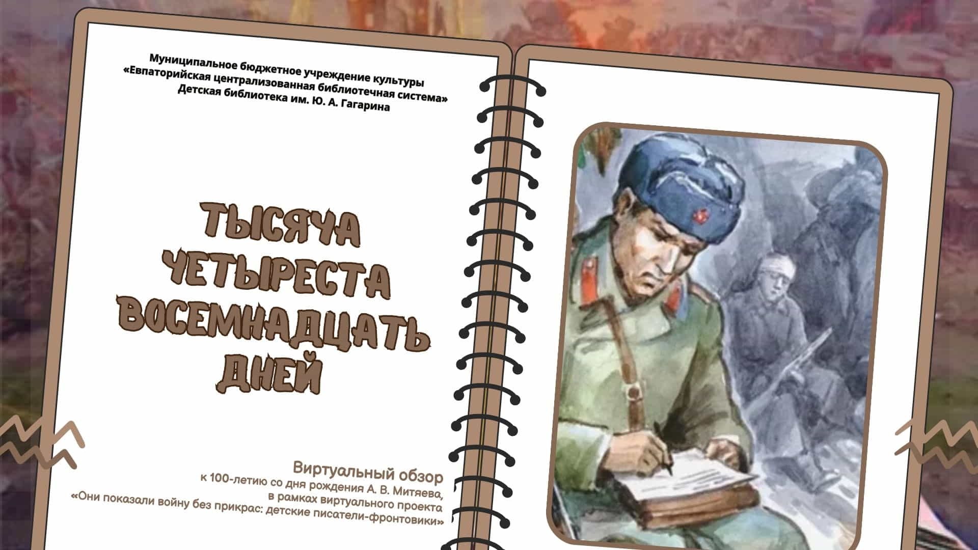 К 100-летию со дня рождения писателя детская библиотека им. Ю. Гагарина подготовила виртуальный обзор «Тысяча четыреста восемнадцать дней» .