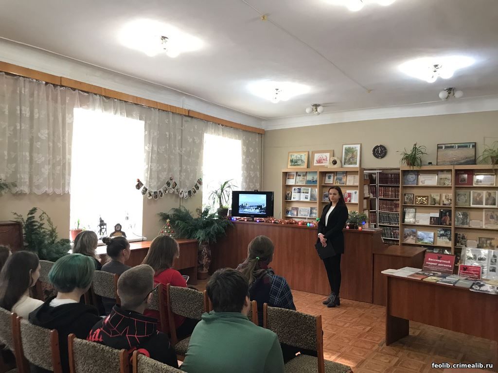 1 ноября 2023 года исполнилось 80 лет со дня начала героической Керченско-Эльтигенской десантной операции. С небольшого плацдарма в районе поселка Эльтиген, получившего название Огненная земля, началось освобождение Крыма от немецко-фашистских и румынских захватчиков. В рамках программы «Феодосийцы в истории России» в Центральной городской библиотеке им. А. Грина состоялся вечер исторической памяти «Огненная земля Эльтигена». Гостями вечера стали студенты Юго-Восточной академии Крымского федерального университета. Ведущая - библиотекарь Кристина Ильина - рассказала об основных этапах десантной операции, длившейся 40 дней и ночей. Юноши и девушки с большим вниманием слушали рассказ, как происходило десантирование в семибалльный шторм и мороз, о мужестве бойцов, вынужденных прыгать в ледяную воду и нести к берегу боеприпасы и оружие. Студенты отметили удивительную стойкость и массовый героизм эльтигенцев. Информационным дополнением послужила документальная видеохроника событий ноября–декабря 1943 года в Крыму и книжно-иллюстративная выставка «Бессмертный подвиг десанта». В завершение мероприятия К. Ильина ответила на вопросы присутствующей молодежи. Крым – земля героев, память о погибших ради жизни на Земле, остается в сердцах благодарных потомков.