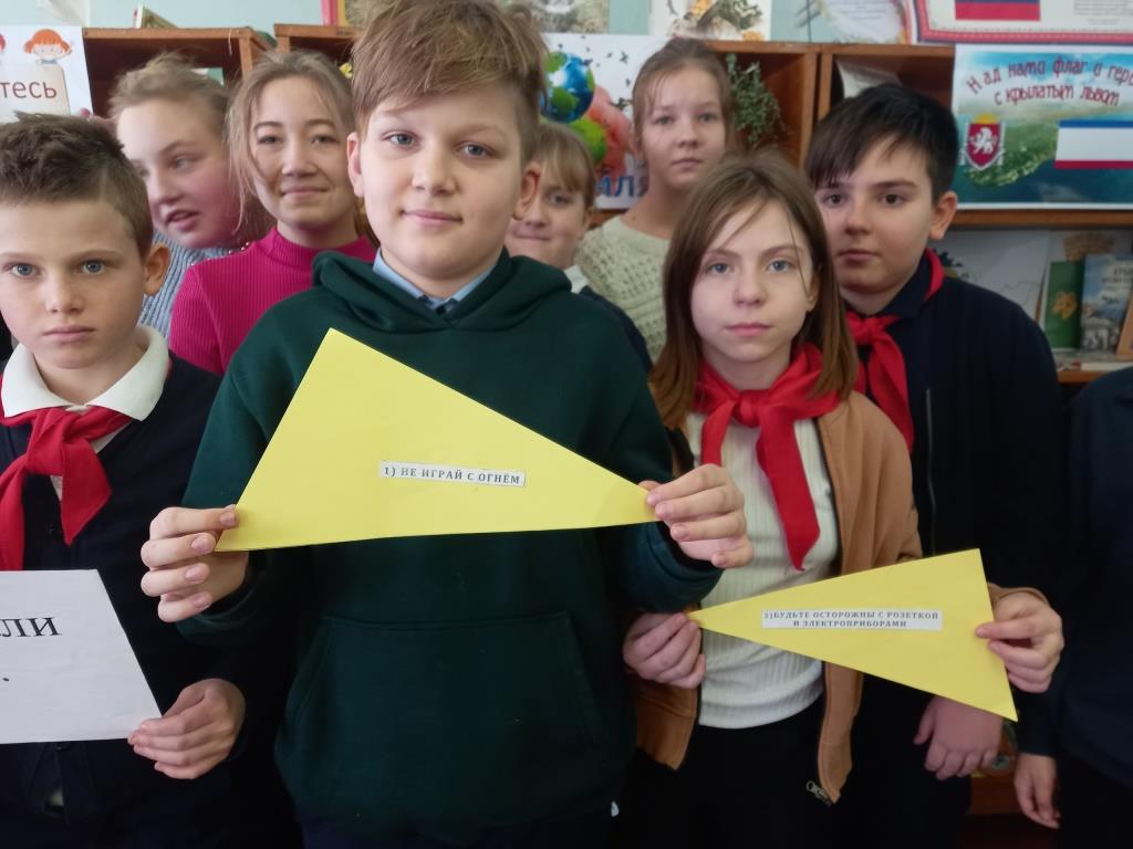 А для новоозёрненских школьников была подготовлена комплексная программа о безопасном поведении . Ребята затвердили, как нужно действовать, чтобы избежать возгораний, не попасть под машину, не стать жертвой преступника. Правильно ответив на вопросы тематической викторины, участники мероприятия разделились на группы и создали, а потом защитили три творческих мини-проекта: «Опасность дома», «Опасность на дороге» и «Опасность на воде». И в заключение посмотрели мультфильм «Смешарики: Азбука безопасности».