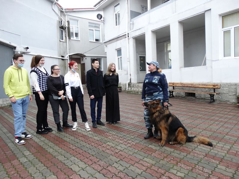 Молодежь также поучаствовала в процессе тренировки служебных собак, направленной на поиск пропавших людей, наркотических и взрывчатых веществ. Полицейский кинолог обратила внимание слушателей на особенность работы со служебными собаками – это долгий и кропотливый труд. Время обучения необходимым навыкам зависит от породы и характера животного, но для каждой взятой на службу собаки можно найти подход.