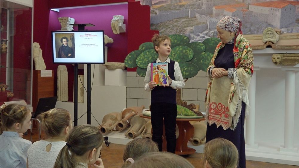 В рамках программы «Музейные сказки» Восточно-Крымского историко-культурного музея-заповедника для керченских школьников проведена встреча, посвященная жизни и творчеству выдающегося русского поэта. Заведующая научно-просветительным отделом и автор программы Надежда Макарова в образе знаменитой няни Арины Родионовны рассказала историю семьи и трагической гибели А.С. Пушкина. Ребята зачитывали наизусть отрывки из любимых сказок, делились своим творчеством - рисунками с изображением героев пушкинских произведений. Организаторы встречи предложили юным гостям небольшой квест по мотивам сказок писателя.