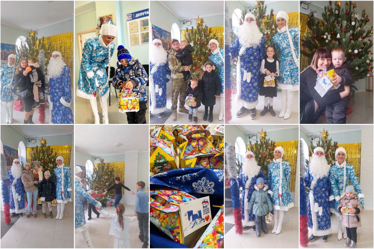 Взрослых и детей, пришедших в Общественную приемную местного отделения, встречали главные персонажи Нового Года – Дед Мороз и Снегурочка. Для гостей организовали новогоднее представление с конкурсами и вручением сладких подарков.