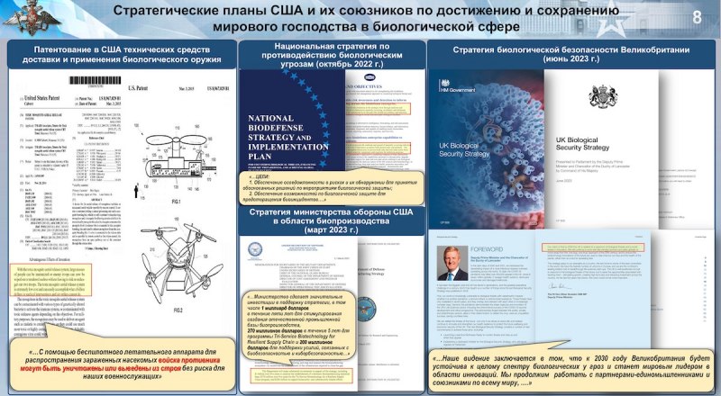 Стратегические планы США и их вассалов по достижению и сохранению господства в биологической сфере (по данным Минобороны РФ).