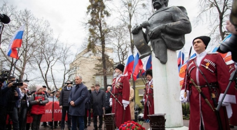 Цветы к памятнику Богдану Хмельницкому в Симферополе возложили председатель Государственного Совета Республики Крым Владимир Константинов, сенатор Российской Федерации Сергей Цеков, зампредседателя Народного Совета ЛНР Олег Коваль, представители Херсонской и Запорожской областей, депутаты и общественники.