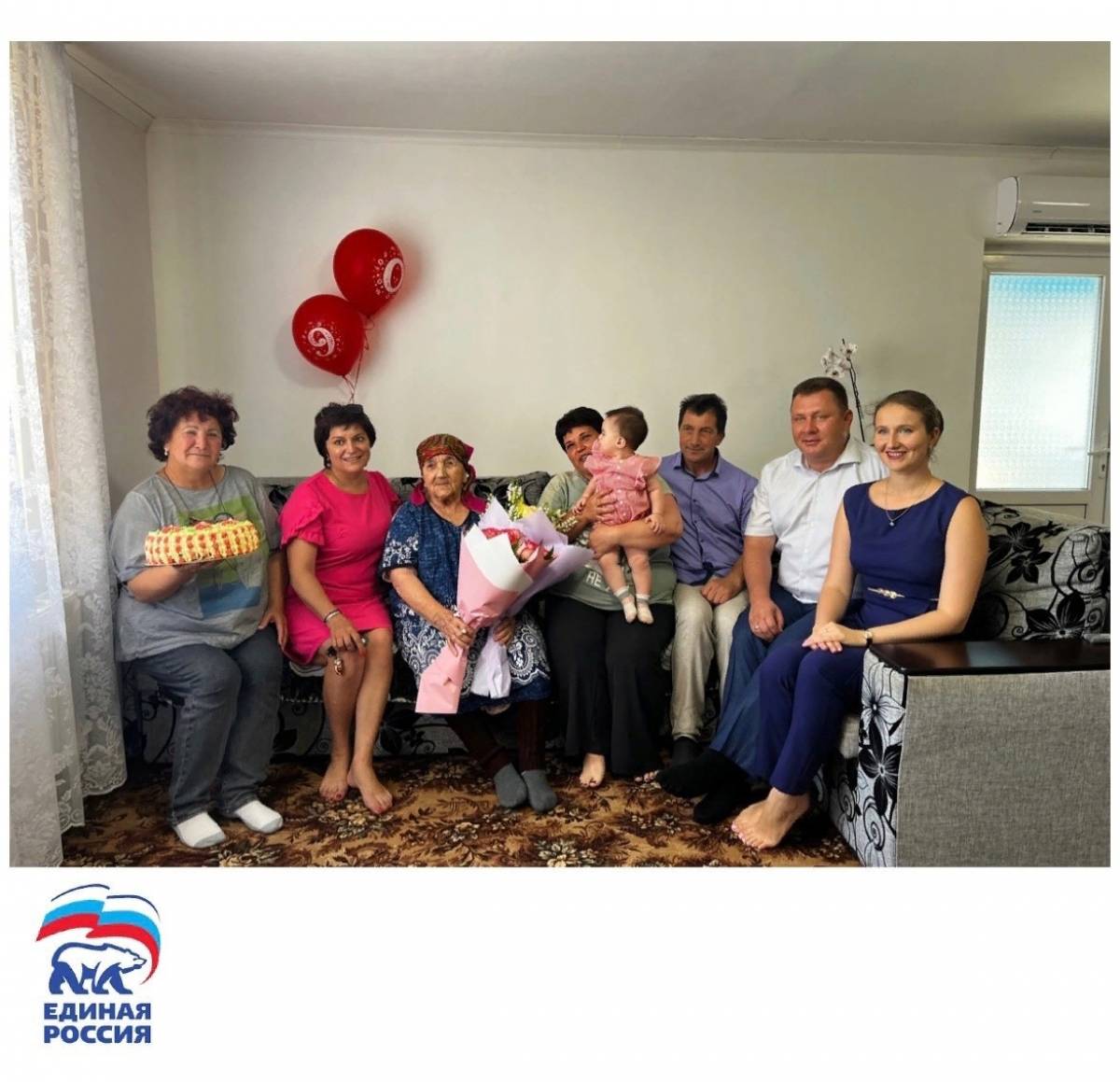 В день юбилея именинницу пришли поздравить: глава Мичуринского сельского поселения, депутат Партии «Единая Россия» Оксана Сотникова,