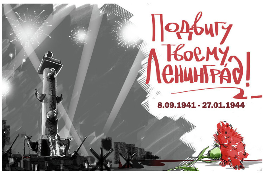 Блокада города-героя Ленинграда — одна из самых трагичных страниц Великой Отечественной войны. Начавшаяся 8 сентября 1941 года, блокада продолжалась 872 дня и стала самой кровопролитной в истории человечества. За это время фашисты сбросили на город 107 тысяч авиабомб и выпустили 150 тысяч снарядов, погибло 632 тысячи человек (по информации, прозвучавшей на Нюрнбергском процессе), по другим данным эта цифра достигает 1 миллиона. 97% жителей Ленинграда умерли от голода, 3% — погибли во время бомбежек. Германское командование придавало захвату города важное стратегическое и политическое значение, поэтому фашистские войска приступили к наступлению на Ленинград в июле 1941 года, а в августе тяжелые бои уже шли на подступах к городу. В осаждённом Ленинграде оказалось более двух с половиной миллионов жителей, в том числе 400 тысяч детей. В условиях блокады промышленность города не прекращала работать, ленинградцы трудились на оборонных предприятиях, воевали в дивизиях народного ополчения. В планы Гитлера в отношении города входило сровнять его с лица земли вместе с населением с помощью артиллерии всех калибров и непрерывных бомбардировок с воздуха. Хуже всего пришлось гражданскому населению, которое, несмотря на помощь с Большой земли, страдало от голода. Хотя город имел развитую пищевую промышленность и в мирное время обеспечивал не только потребности свои и области, но и других регионов, значительных запасов на складах не имелось. С 18 июля в городе была введена карточная система, нормы продуктов по которой неоднократно сокращались. Нормальную еду приходилось заменять суррогатами. Хлеб, который был почти единственным продуктом питания большинства блокадников, содержал до 40% примесей. Весной 1942-го, как только появилась трава, жители города воспользовались ею для приготовления пищи, и за короткий срок растительности не осталось. Огромное значение для блокадников имела Дорога жизни — ледовый путь через Ладожское озеро, который функционировал с 22 ноября 1941 года по 23 апреля 1942-го. Дорога начала действовать в те дни, когда норму продовольствия в городе урезали до минимума, а люди массово умирали от голода. Через Ладожское озеро были проложены телефонно-телеграфный и электрический кабели, которые обеспечивали связь с Большой землей и электроснабжение Ленинграда. На дне озера был построен трубопровод для снабжения топливом, Ладожская военная флотилия защищала коммуникации, а Северо-Западное речное пароходство перевозило грузы в то время, когда льда на озере не было. Именно эта связь с Большой землей позволила к весне 1942 года создать в городе продовольственный запас на два месяца, в результате которого, наконец, была увеличена норма выдачи хлеба. Немцы бомбили и обстреливали дорогу, но им не удалось остановить движение. Несмотря ни на что, в осажденном городе продолжалась культурная жизнь: летом 1942 года были открыты некоторые учебные заведения, театры и кинотеатры, было дано несколько джазовых концертов. Во время блокады в городе были открыты три храма: Князь-Владимирский собор, Спасо-Преображенский собор и Никольский собор. Не было никаких крупных эпидемий, и это несмотря на то, что почти полностью отсутствовали водопровод, канализация и отопление. Окончательно снять блокаду Ленинграда советским войскам удалось 27 января 1944 года. Такое н