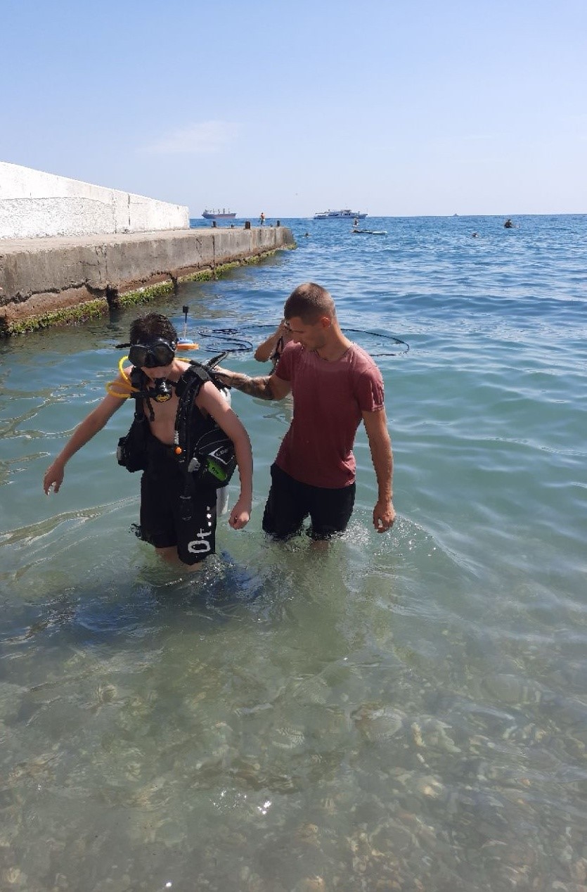 Инструктор по легководолазной подготовке, участник боевых действий Евгений Х. и инструктор-спасатель Александр Султановский провели с ребятами индивидуальные погружения с аквалангом.