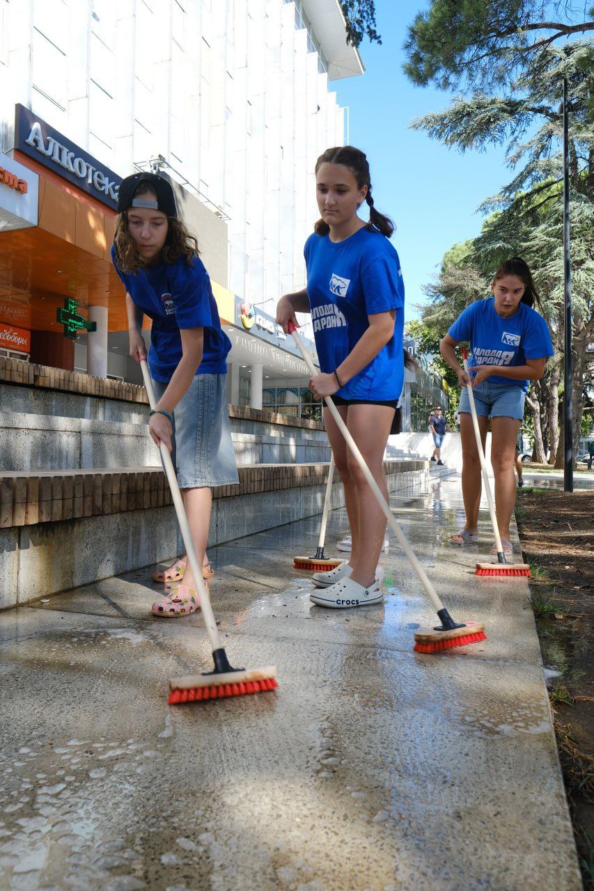 Глава администрации Ялты присоединилась к проекту Молодежного совета «Генералка». В рамках этого проекта ребята проводят уборку общественных территорий. Ранее они чистили Юбилейный, а вместе с главой администрации города Ялта отмыли площадь Советскую.