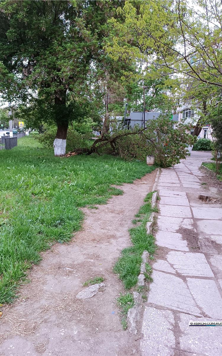 По улице Войкова у автобусной остановки "Казакова" рядом с магазином "Ягодка" от старого дерева отломалась ветка.