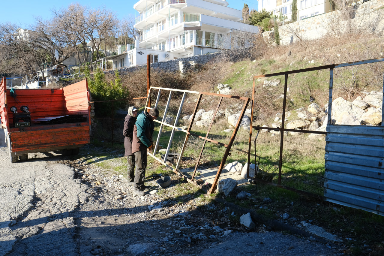 «Скандальный забор на улице 1 Мая в Алупке демонтирован. Сегодня наши службы вывезли на хранение в МБУ «Зеленстрой» свыше 200 метров аварийных металлоконструкций.