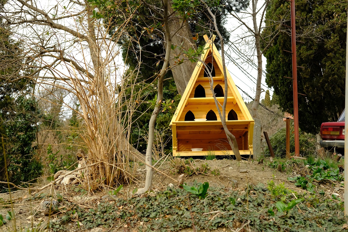 В Алупке для бездомных кошек установили трехэтажный домик