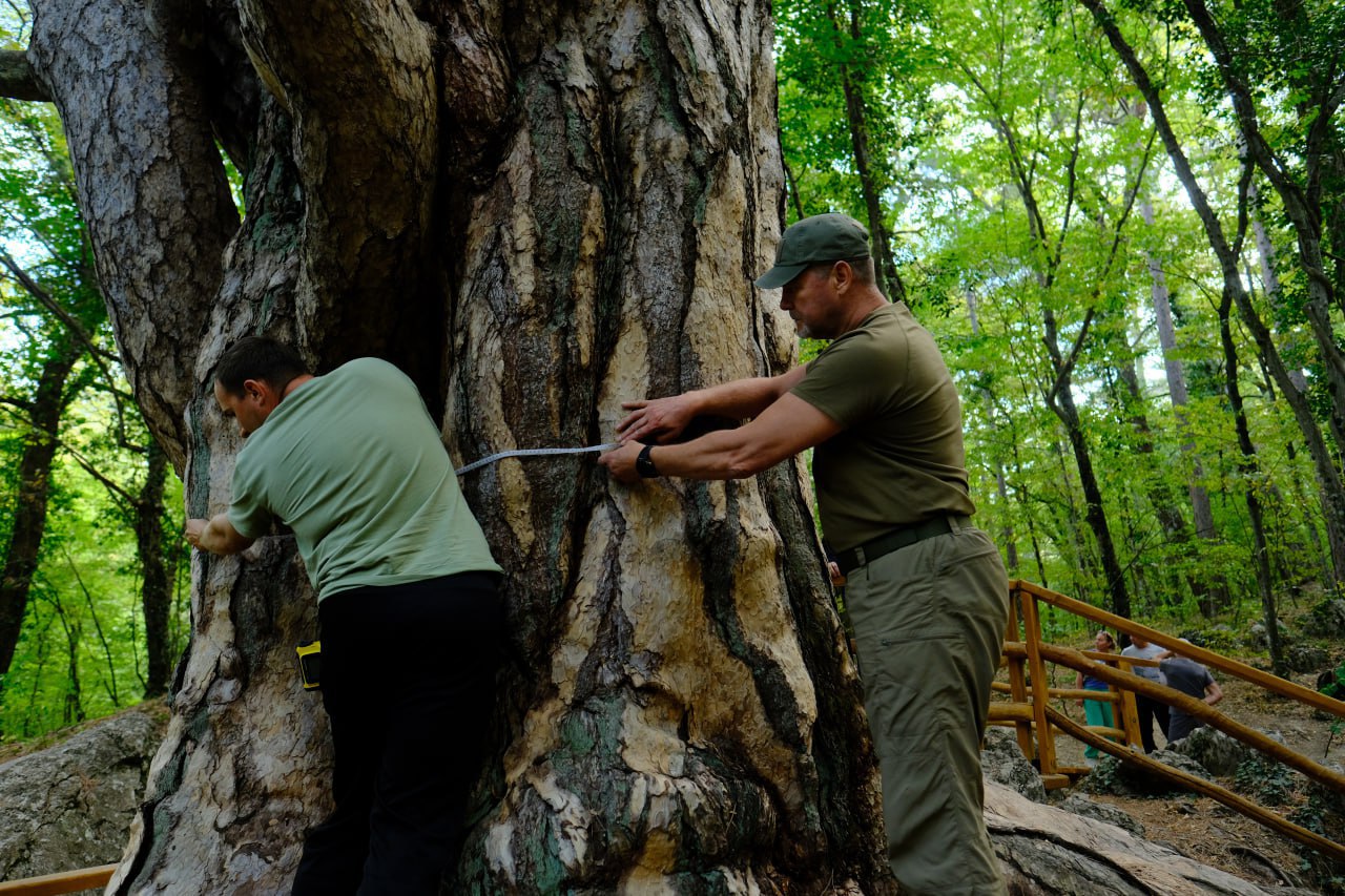 Специалисты ФГБУ «Заповедный Крым» и учёные Никитского Ботанического сада определяют точный возраст сосны Палласа и высоту водопада Учан-Су