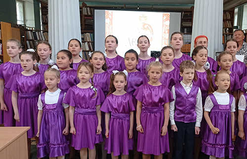 Библиотекари рассказали собравшимся историю создания Кириллом и Мефодием славянской азбуки, ставшей могучим средством объединения славян, основой для развития славянской письменности, книжного дела и литературного языка, базисом для образования, просвещения и науки. Была представлена книжно-иллюстрированная выставка «Слава вам, братья, славян просветители!».