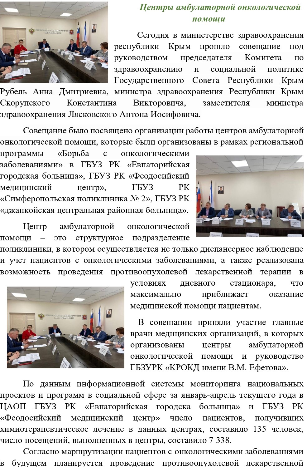 Сегодня в министерстве здравоохранения республики Крым прошло совещание....