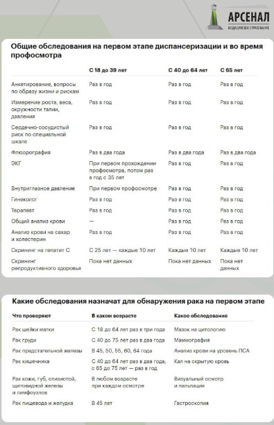 определением абсолютного сердечно-сосудистого риска ; общим анализом крови ; несколькими видами скринингового обследования, которое направлено на раннее выявление различных онкопатологий.Для граждан, переболевших covid -19, перечень стандартных обследований дополнен: