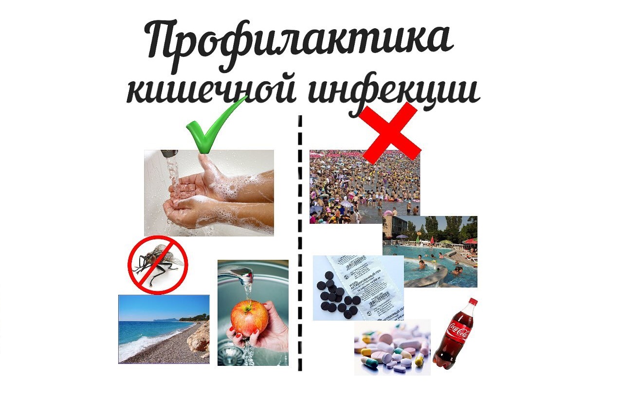Тщательно мыть руки перед приготовлением и приемом пищи, а также после посещения туалета и улицы. Следить за чистотой рук у детей, научить их соблюдать правила личной гигиены. Пить кипяченую или бутилированную воду. Следить за сроками годности продуктов. Тщательно мыть овощи и фрукты перед употреблением. Проводить тщательную термическую обработку сырых продуктов. Продукты хранить в холодильнике. Не оставлять готовые продукты при комнатной температуре более чем на 2 часа. Правильно хранить продукты в холодильнике: не допускать контакта между сырыми и готовыми продуктами. Содержать кухню в чистоте, своевременно избавляться от мусора, не допускать появления насекомых: тараканов и мух. Купаться только в разрешенных для этих целей водоемах. При купании в водоемах и бассейнах не допускать попадания воды в рот. Соблюдение правил личной гигиены – основа профилактики кишечных инфекций.