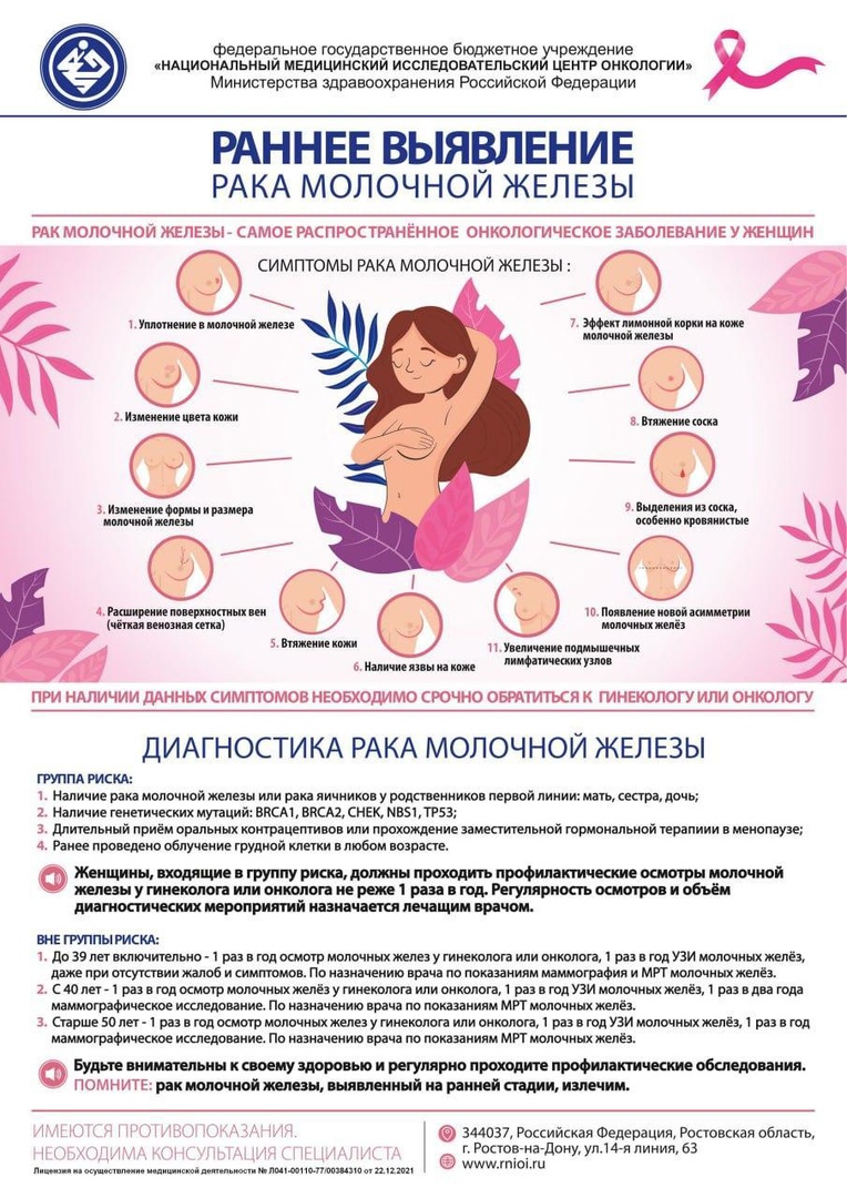 Рак молочной железы является наиболее распространенным онкологическим заболеванием среди женщин. Всем женщинам рекомендуется регулярно проводить самообследование молочных желез, а маммографию в профилактических целях после 40 рекомендуется проходить 1 раз в год.