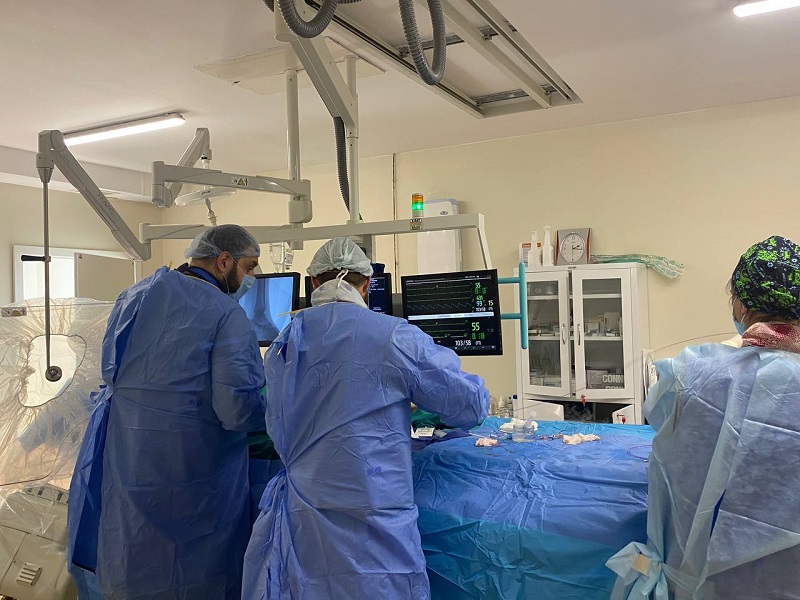 В период своего трудового отпуска был приглашен коллега из госпиталя ветеранов войн Чеченской Республики Анзор Дикалович Махаури. В своей клинике он заведует отделением эндоваскулярной хирургии и является главным эндоваскулярным хирургом Чеченской Республики. Этот доктор имеет большой опыт работы с пациентами, которые нуждаются в эндоваскулярных методах лечения атеросклероза нижних конечностей. Анзор Дикалович выполнил операцию: баллонная ангиопластика артерий голени и стопы. Первым этапом была открыта одна из 2-х основных закрытых артерий голени, затем, после многократных попыток пройти через вторую закрытую артерию сверху вниз, хирурги прибегли к методике ретроградной реканализации — через коллатеральные ветви на стопе ранее открытой артерии был успешно проведен баллон снизу вверх с последующей баллонной пластикой второй закрытой артерии.