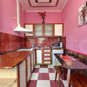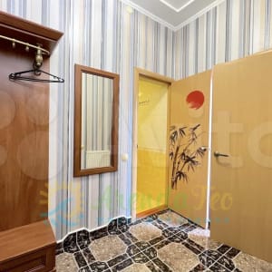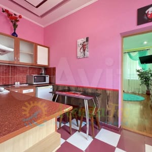 Квартира находится в развитом районе города, где и магазины, и море будут в шаговой доступности. Отдельный вход. С комфортом здесь разместится семья до 3 человек. Планировка Очень компактная: из небольшой прихожей выход на кухню. Кухня проходная – с ее территории спланирован выход в комнату.