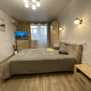 В квартире есть двухспальная кровать и евро-диван ,мебель, кондиционер, телевизор, холодильник, микроволновка, стиральная машина,утюг, постельное бельё, посуда.