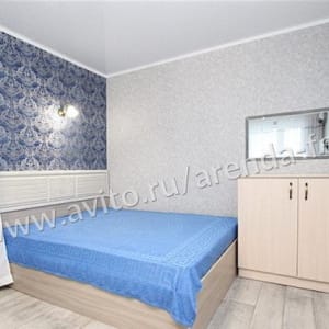 Meбель: двуспальная кровать. двуспальный диван, комод, кухня.