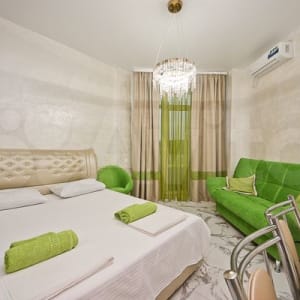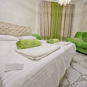 В квартире есть все необходимое как для семейного отдыха с детьми, так и для отдыха молодой пары. Для крепкого и здорового сна установлена кровать с хорошим матрацем, а для детей имеется раскладной двуспальный диван. На имеющемся балконе вы сможете не только отдыхать, но и обедать на свежем воздухе, ведь там для вас установлен стол со стульями.