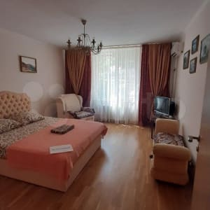 Квартира большая, 50 м², есть все необходимое для комфортного проживания семьи из трех человек - двуспальная кровать, кресло-кровать. Дополнительное спальное место (комфортная раскладная кровать) +500руб/сутки. Есть стиральная машина, фен, холодильник, печь СВЧ, мультиварка, блендер, кондиционер, телевизор, Wi-Fi.