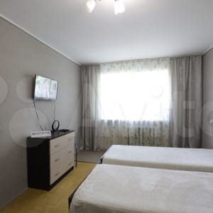 В квартире 4 спальных места (можно увеличить до 5), находящихся в двух раздельных комнатах. В одной комнате находятся 2 односпальные раздельные кровати, шкаф, телевизор, балкон с видом на улицу и двор, во второй комнате - 2 односпальные раздельные кровати, телевизор, комод. Кондиционер установлен в 2019 году и находится в коридоре. В квартире есть Wi-Fi (60 Мбит/с).