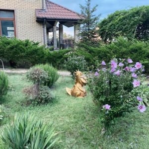 Благоустроенный двор, 10 соток, с ливневкой и резервуаром для дождевой воды, имеется гараж на одну машину и площадка перед гаражом для двух машин , вольер для собаки , дорожки выложены из качественной плитки - Брук , террасы во дворе облицованы Дикарем , забор из белого кирпича, облицован Дикарем и оформлен дизайнерской ковкой , имеется уличный туалет , оборудованный новой сантехникой, есть сарай для садового инвентаря , заложен электрический кабель для уличного освещения и частично подключены фонари , есть разработки , сметы и чертежи для фонтана и пруда , частично забетонированные емкости для прудам и заложены трубы для перелива и кабель для освещения двора, имеется площадка вымощенная плиткой под зону отдыха и клумбы для цветов , по всей территории двора заложен поливочный водопровод , имеется в наличие оборудованная детская площадка , двор ухоженный , засаженный многолетними ,декоративными кустами и деревьями .