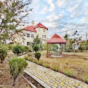 У главного входа декоративный фонтан.Площадка навес для барбекю и четыре беседки для отдыха.Бассейн, открытое джакузи, летний открытый душ.