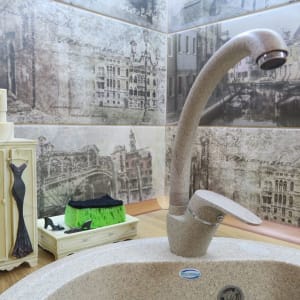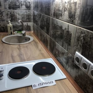✅Кухня с эл. плитой, холодильником, эл.чайником, вытяжкой, микроволновой печью, посудой, фильтром для воды и столовыми приборами.